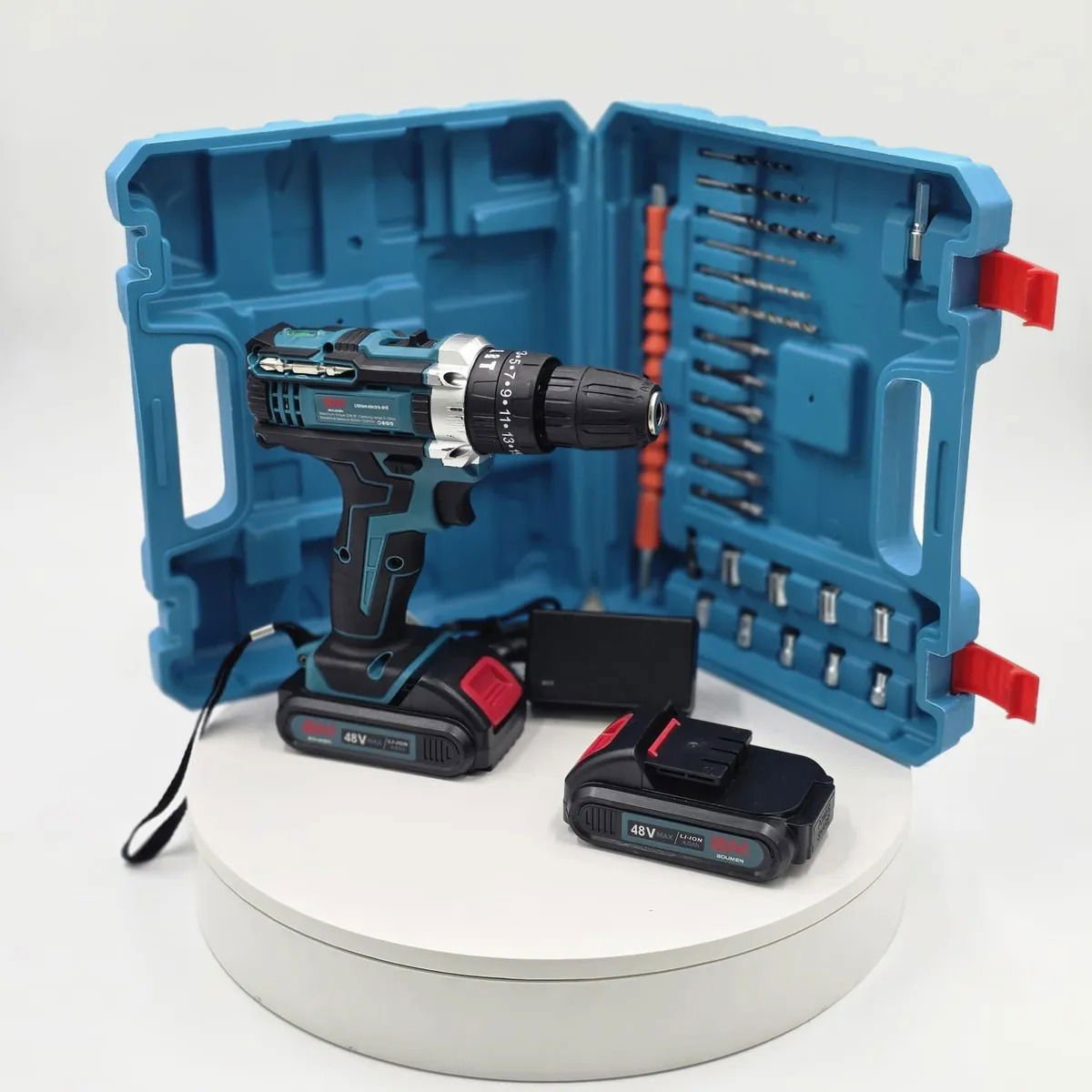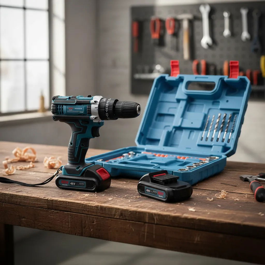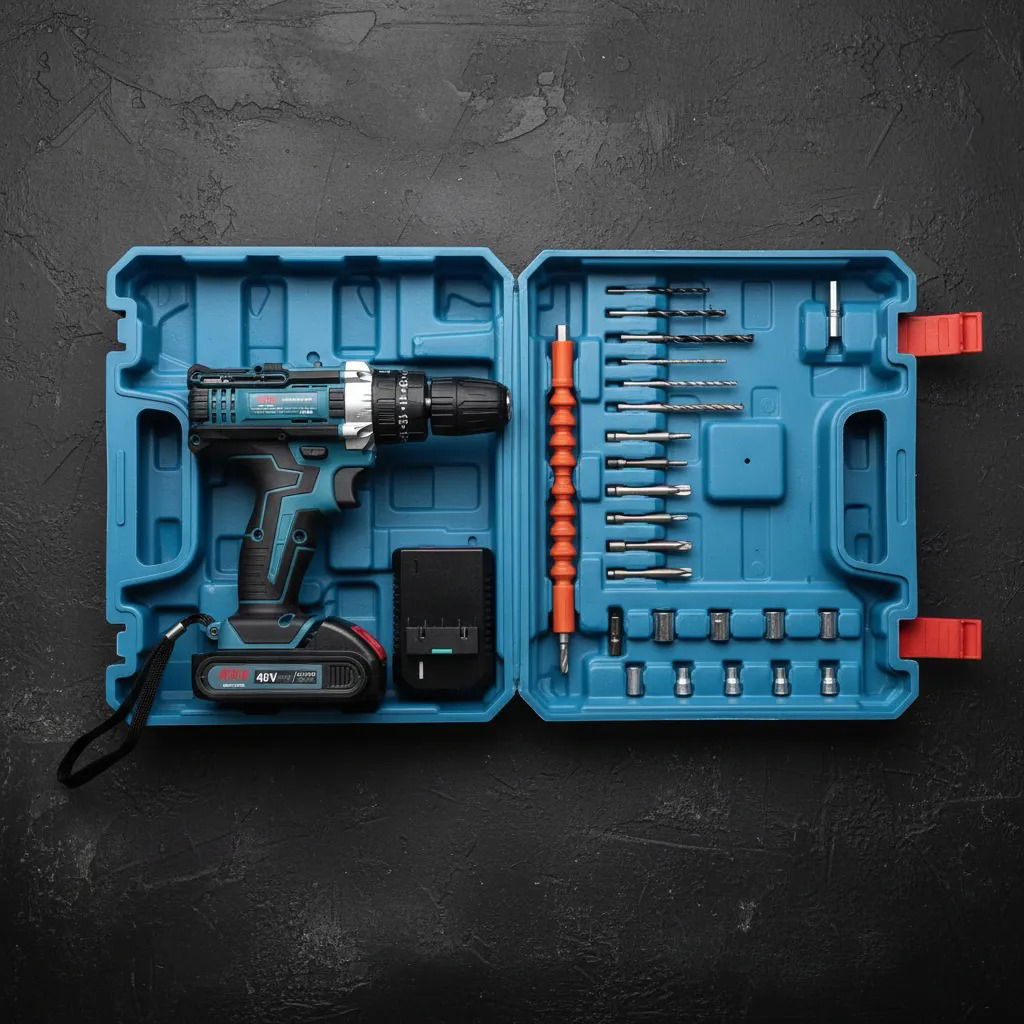 Incluye: Maletin - Taladro Atornillador - 2 Bateria 48v - Cargador de Bateria - 24 Piezas Adicionales - Instrucciones