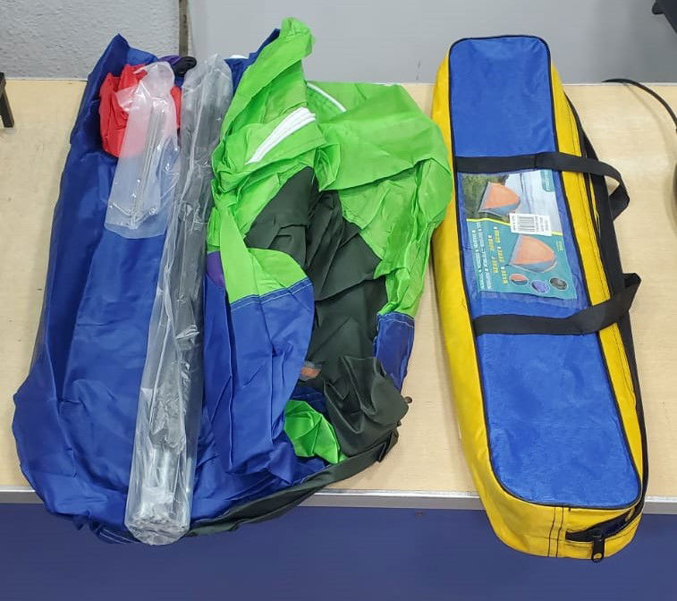 Incluye: Bolso - 4 Estacas - 2 Varrilas - CubreTecho - Carpa