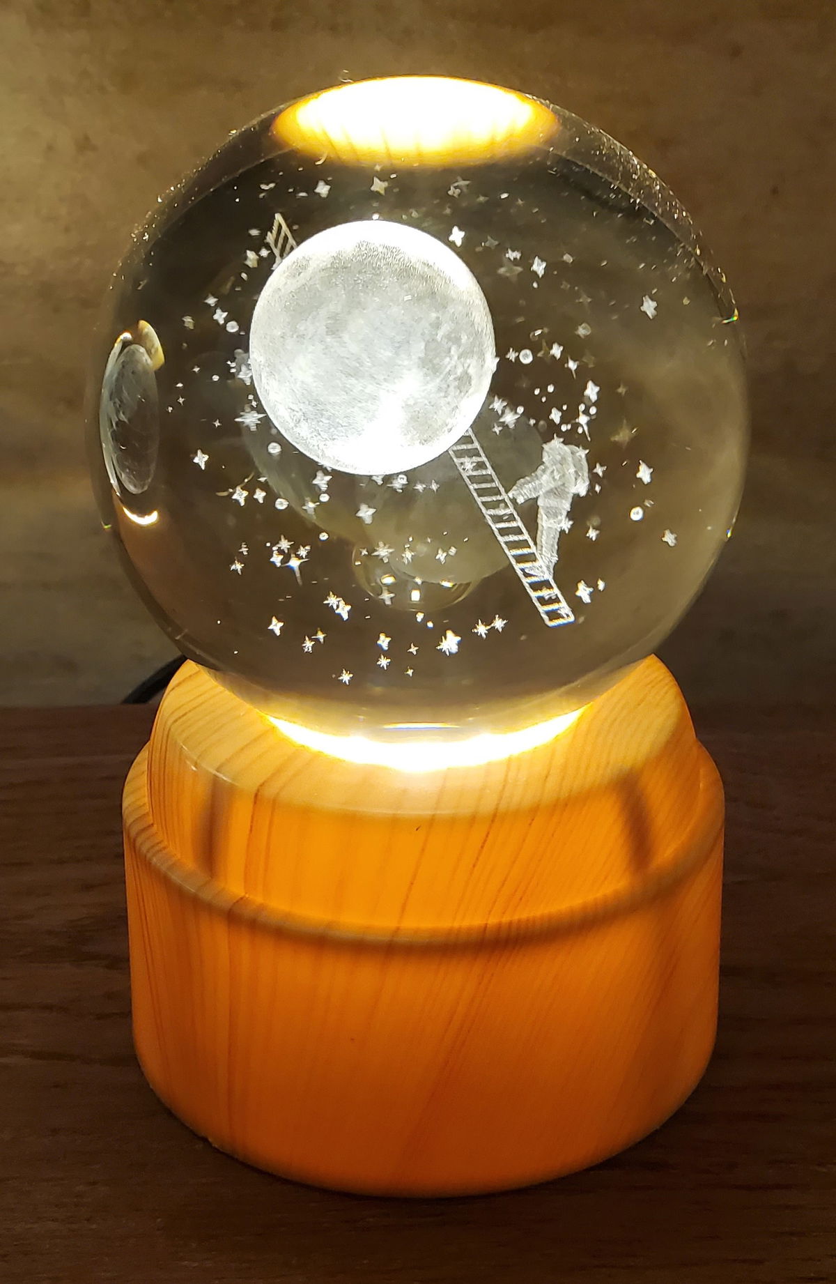 Incluye: Caja - Base Fija - Cable a USB - Esfera Cristal