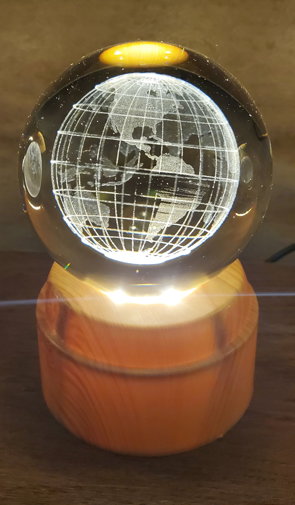 Incluye: Caja - Base Giratoria - Cable USB a C - Esfera Cristal