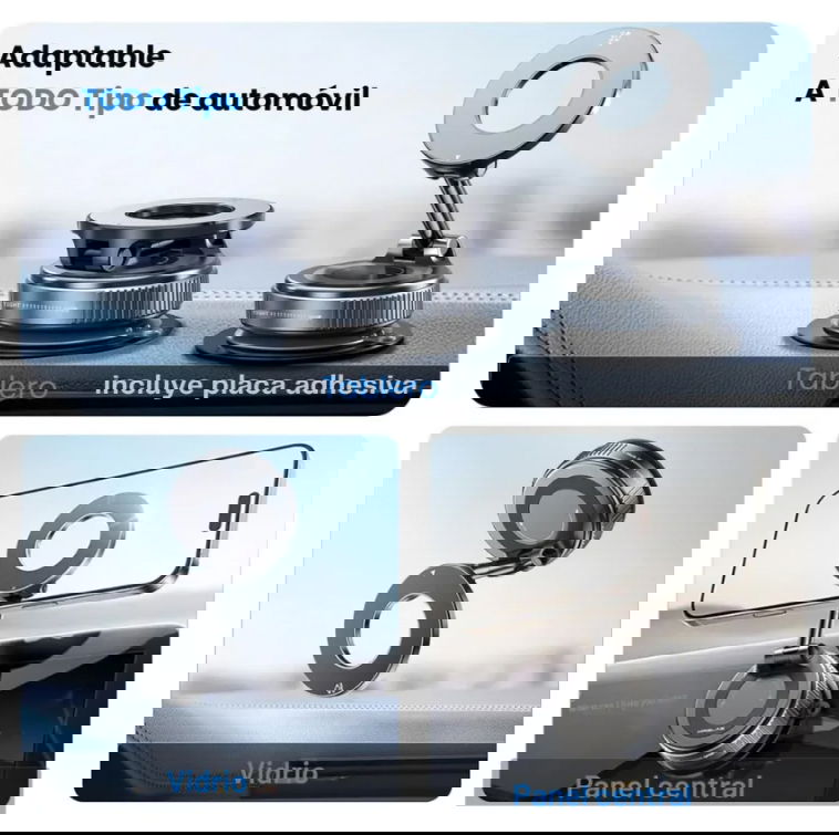 Incluye: Base para Fijar en superficie lisa o de metal - 2 Aros Metal Para colocar en el celu