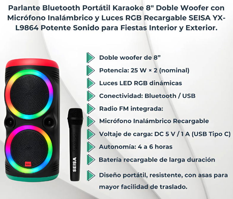 - Parlantes: 2 x 8"
